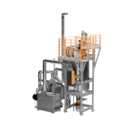 Tremonha de aço inoxidável equipada com sistema de agitação vertical. Acionado por motoredutores planetários com rotações muito baixas.